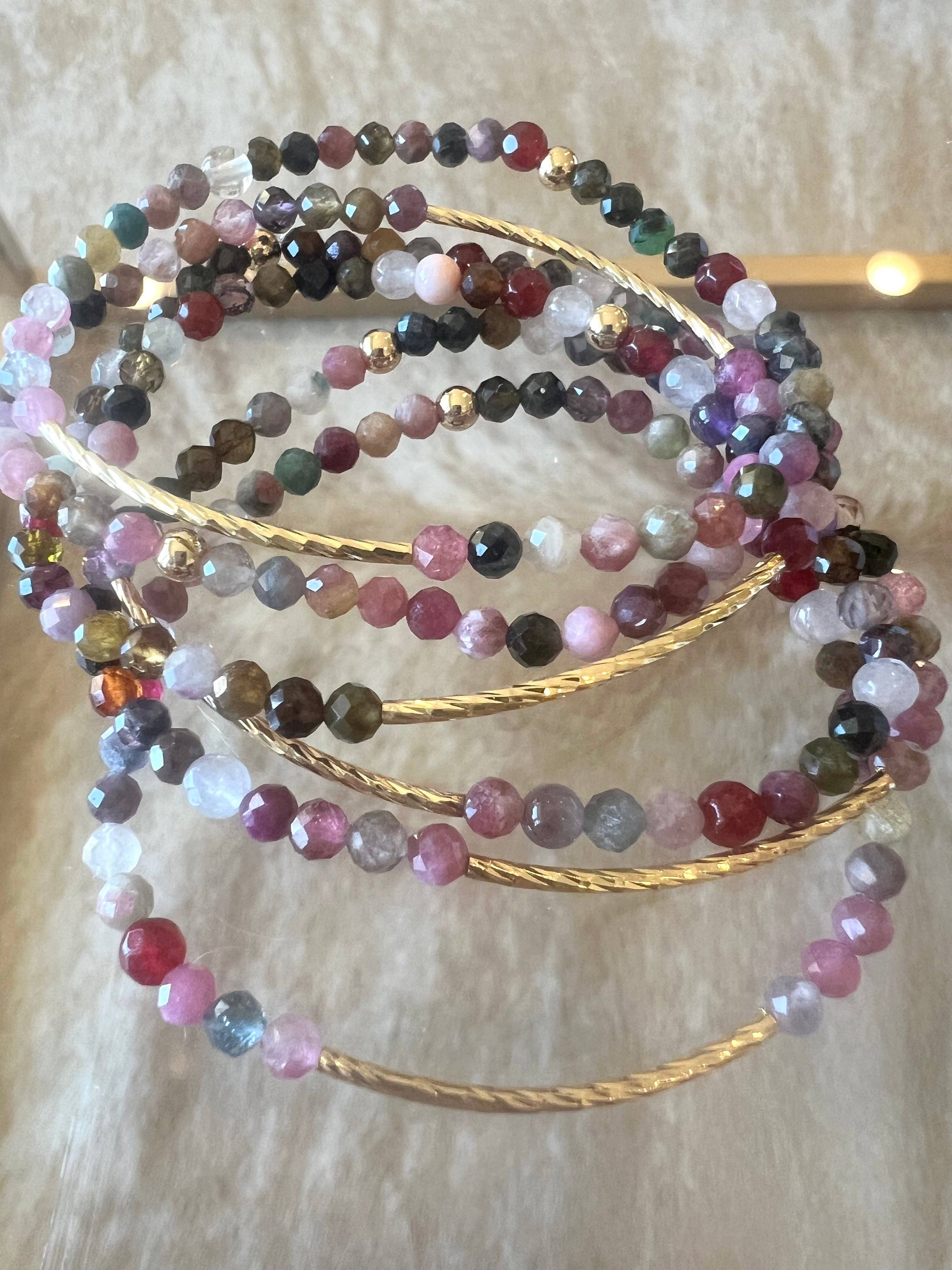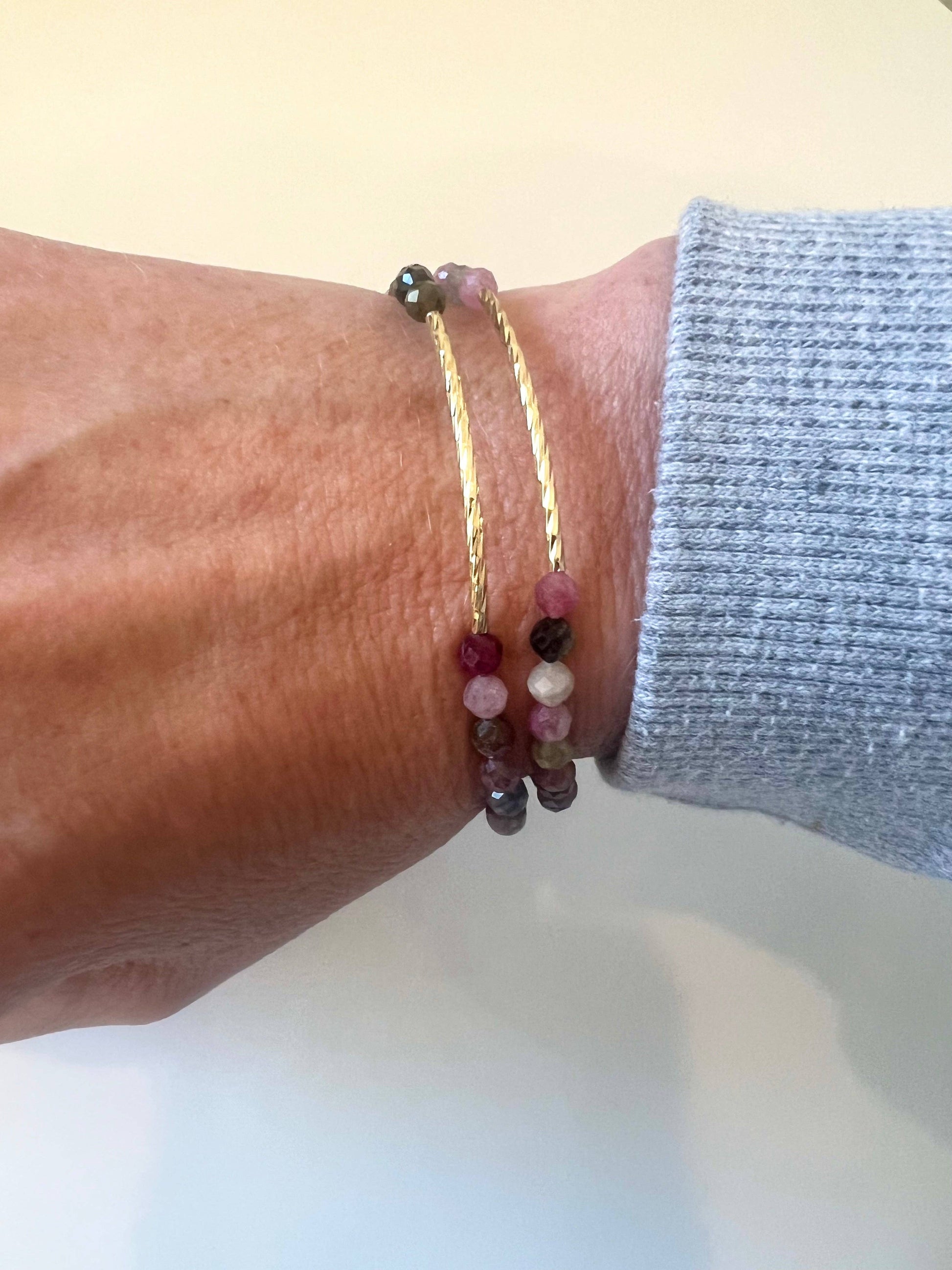 Tourmaline bead bracelet . 4 mm beads with baby gold plated bar. Set of 2.